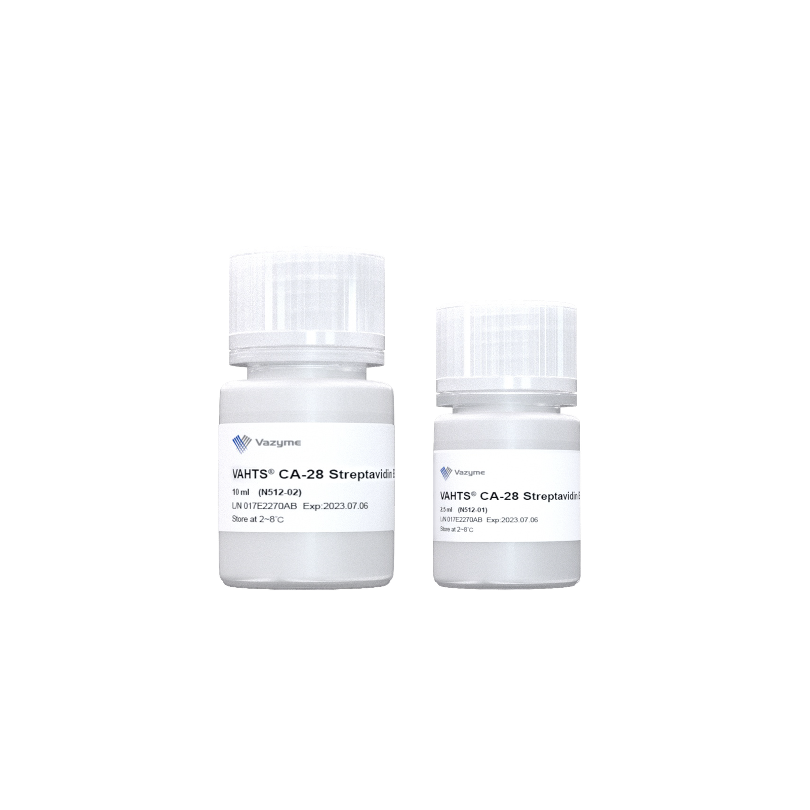 VAHTS CA-28 Streptavidin Beads are hydrophilic superparamagnetic polystyrene microspheres covalently bound with highly purified streptavidin and have a free biotin-binding capacity >950 pmol/mg. Utilizing the high binding affinity of the streptavidin-biotin interaction (Kd = 10-15 mol/L), the product can quickly and efficiently bind with biotinylated nucleic acids, antibodies or other biotinylated ligands and targets. It is applicable to nucleic acid hybridization capture and separation. The magnetic beads have uniform particle sizes, regular morphology and good repeatability and inter-lot stability.