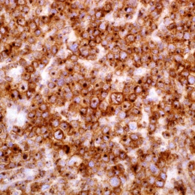 CD2 is one of the initial T-cell lineage restricted antigens toarise during T-cell development and only rare CD2+ cellsmay be identified in the bone marrow. One pan-T-cellantigen marker is anti-CD2. Therefore, anti-CD2 can beused to identify almost all normal T-lymphocytes. It is alsovery useful in the assessment of lymphoid malignancies asit is expressed in the majority of precursor and mature T-cell lymphomas and leukemias. As with other pan-T-cellantigens, CD2 may be aberrantly deleted in variousneoplastic T-cell populations, including peripheral T-celllymphomas. Anti-CD2 may help detect mastocyticleukaemia and systemic mastocytosis when paired withanti-CD25. T-cell surface antigen A surface glycoproteinspecific to T cells, CD2 (CD2) plays a crucial role inpromoting T cell adhesion to target or antigen-presentingcells. It mediates adhesion between T-cells and other celltypes by interacting with CD48/BCM1 and lymphocytefunction-associated antigen (LFA-3). The cytoplasmicdomain is involved in signalling, and CD2 is implicated in T-cell activation. One pan T-cell marker is CD2. CD2 antibodylabels T-cell, thymocytes and natural killer (NK) cells. A tinypercentage of T cells lack CD2. CD2 antibody is useful foridentification of precursor and mature T-cell lymphomas.Aberrant loss of CD2 in T-cell lymphomas may help todistinguish them from reactive T-cell proliferations.