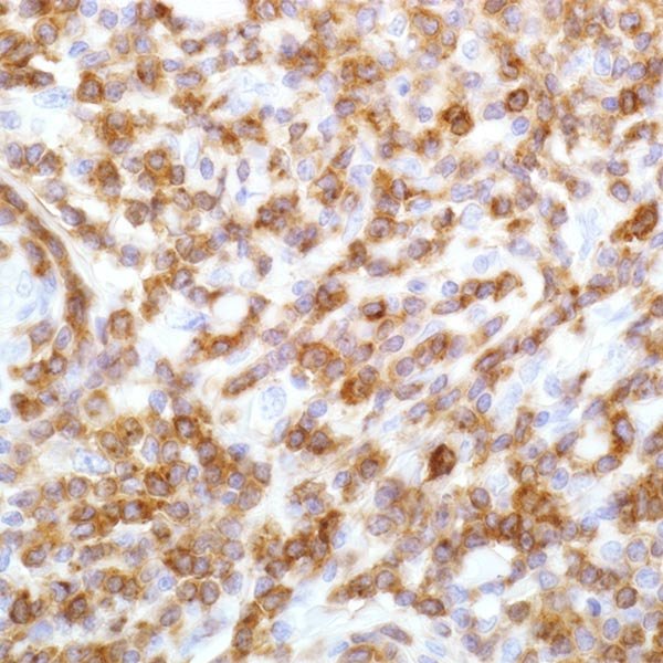 CD7 is a 40 kDa single-chain glycoprotein transmembranethat belongs to the immunoglobulin gene class. T-cellleukaemia and the majority of immature and mature T-lymphocytes express it. Malignant B-cells, a tiny subset ofnormal B-cells, and natural killer cells also contain CD7.During the early stages of lymphoid development, it iscrucial for both T-cell contacts and T-cell/B-cellinteractions.Since CD7 antibody is a T-cell antigen that is constantlyexpressed in lymphoblastic lymphomas and leukaemias, itis a helpful marker for identifying these neoplasticproliferations. T-cell Acute LymphoblasticLeukemia/Lymphoma, Acute Myelogenous Leukaemia,Chronic Myelogenous Leukaemia, NK cells, certain myeloidcells, and the majority of mature peripheral T-cells andpost-thymic T-cells express CD7 antibodies. Remarkably,CD7 is not expressed in Sezary cells and is noticeablymissing in adult T-cell leukemia/lymphoma.