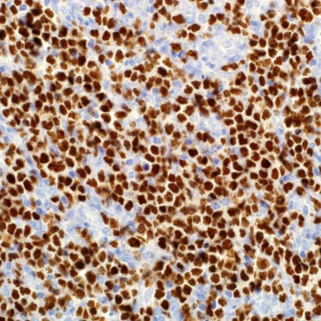 Octamer-binding transcription factor-2 (Oct-2) belongs to the POU homeo-domain family of transcription factors. It attaches to octamer regions of immunoglobulin genes and is essential for the development and differentiation of B-cells, as well as for maintaining B-cell identity. Oct-2 is found in a specific group of normal B-lymphocytes and is also present in different types of B-cell lymphomas, including nodular lymphocyte predominant Hodgkin lymphoma. In contrast, it is generally absent in the Reed–Sternberg and Hodgkin (RS/H) cells associated with classical Hodgkin lymphoma.