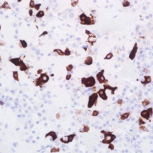 Prolactin (PRL) is a polypeptide composed of one chain containing 226 amino acids, and it is involved in various functions such as cell development, reproduction, and immune response. Anti-Prolactin interacts with cells that produce prolactin and serves as a helpful indicator in the categorization of pituitary tumors and the examination of pituitary disorders.