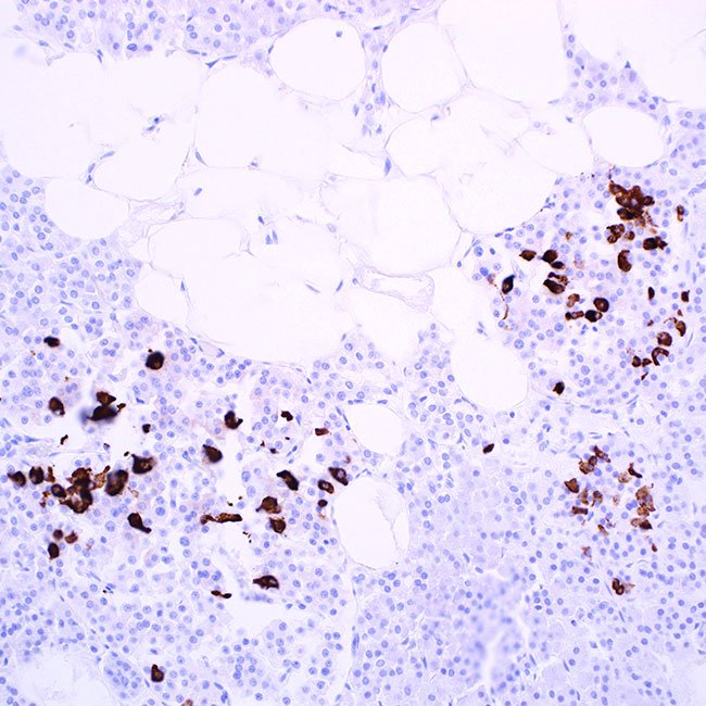 Somatostatin is a type of peptide hormone that is found all over the body and plays a significant role in regulating both endocrine and nervous system activities. This hormone can also be detected in endocrine cells of the gastrointestinal tract, bronchopulmonary regions, thymus, and C-cells of the thyroid. Anti-somatostatin serves as an important indicator of D-cells in the pancreatic islets. It identifies cells that contain somatostatin in pancreatic tumors, islet cell overgrowth, and islet cells that come from pancreatic ductules.