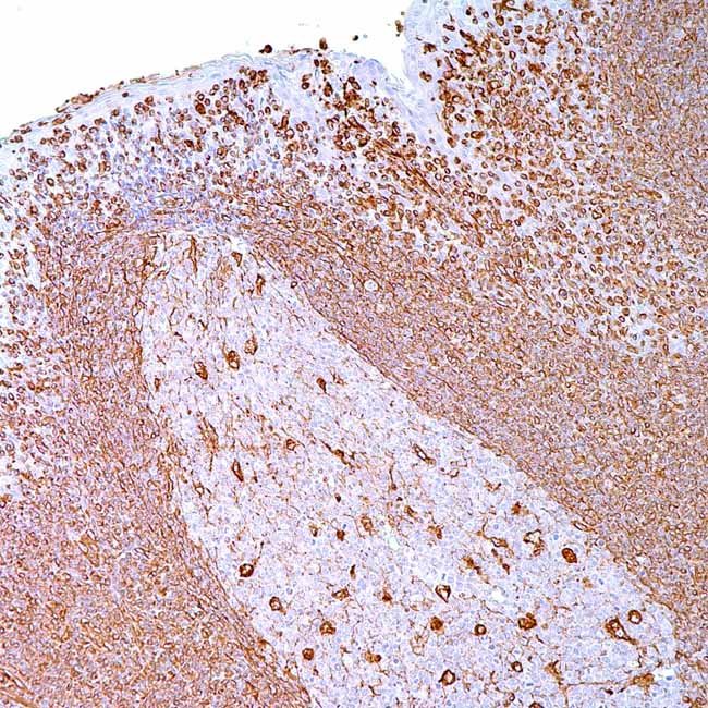 Vimentin belongs to the protein family known asintermediate filaments. One crucial component ofeukaryotic cells’ structure is their intermediate filaments.They comprise the cytoskeleton along with actinmicrofilaments and microtubules. When combined withkeratin, the expression of vimentin antibodies aids in thedifferentiation of melanomas from large-cell lymphomasand undifferentiated carcinomas. Vimentin causes a robustreaction in all Schwannomas and Melanomas. The 57 kDaintermediate filament is recognised by this antibody.Numerous mesenchymal cells, such as fibroblasts,endothelial cells, lymphocytes, and melanocytes, arelabelled by it. Since some tumours (such hepatoma andseminoma) do not contain vimentin, it is frequentlythought that an antibody’s non-reactivity is more beneficialthan its presence.